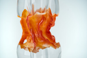 Ses pièces, inspirées de formes utilitaires, évoquent l’usage sans nécessairement s’y conformer. Elles sollicitent le regard, le toucher, et parfois même un certain jeu, où les couleurs, les textures et la matérialité du verre deviennent des points d’entrée vers l’objet. À travers son approche, Chloé interroge le rôle de l’objet dans notre quotidien, en brouillant les frontières entre fonction et contemplation.